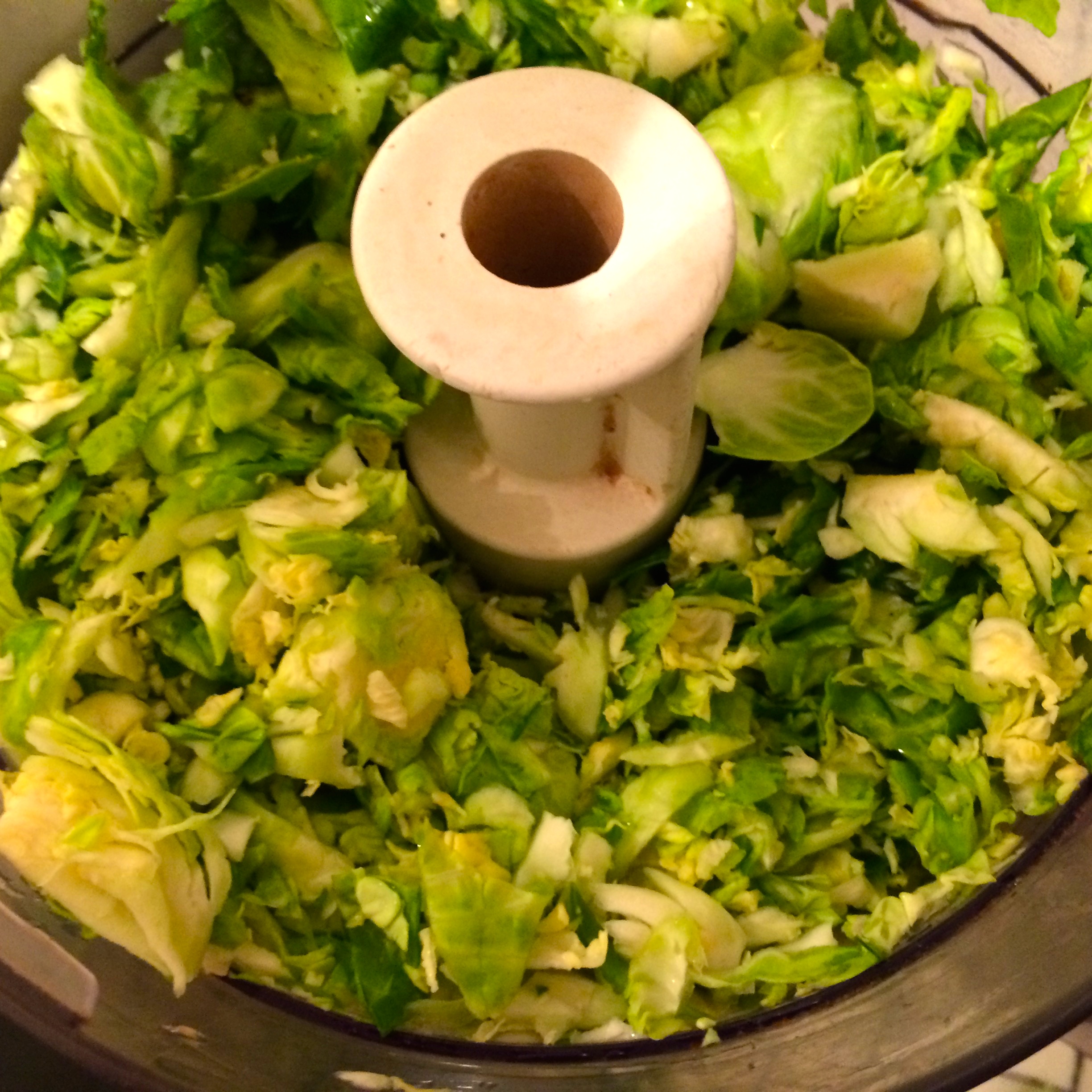 Step 2 – Brussel Sprouts: Place the brussel sprouts in a food processor and pulse for about 30 seconds.